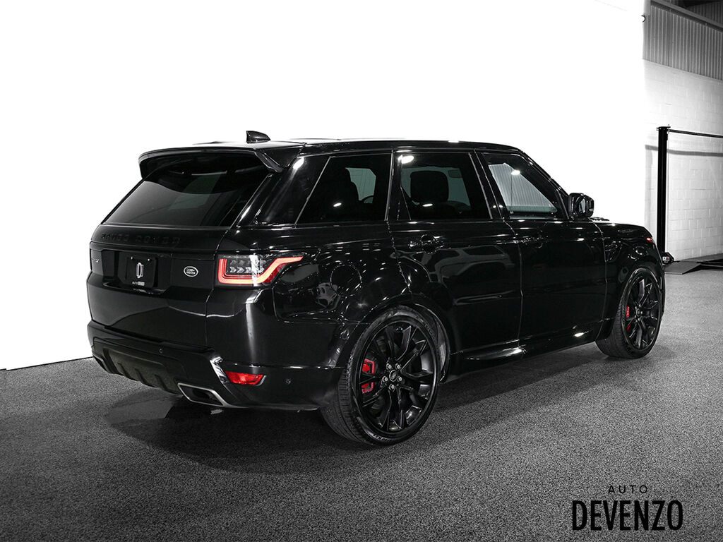 2021 Land Rover Range Rover Sport HST MHEV Hybrid 3.0 Dynamic Package, Santorini Black Metallic on Black/Ebony HST Windsor Leather Trim, 22'' Gloss Black Wheels, Red Brake Calipers, Drive Pro Pack - Adaptive Cruise Control / Forward Collision Assist / Blind Spot / Lane Assist, Heads Up Display, Climate Cooled Seats Front & Rear, Alcantara Suede Steering, Center Console Cooler, Panoramic Sunroof....Beautiful Sport HST and Great Fuel Economy !! Auto Devenzo, Le Nouveau Bijou Des Concessionaires Usagés de Luxe au Canada Venez Vivre Une Experience Et Un Service Vip Hors Du Commun. Transport Partout Au Canada , Facetime / Video Sur Demande. Nous Offrons Le Meilleur Programme De Garantie Prolongée Pour Véhicule Haut De Gamme. Nous Reprenons Tous Vos Échanges Auto Devenzo, Devenez Propriétaire de la Voiture de Vos Reves !! Financement & Leasing Credit-Bail Disponible Come Visit Our New Showroom Of Exclusive Vehicles Of All Makes And See Why We Are The New Jewel Of Used Car Dealers In Quebec Transport All Over Canada Premium Extended Warranty Available For High End Vehicles Valid Across The Country Financing And Leasing Available And Trade-ins Are Welcome.